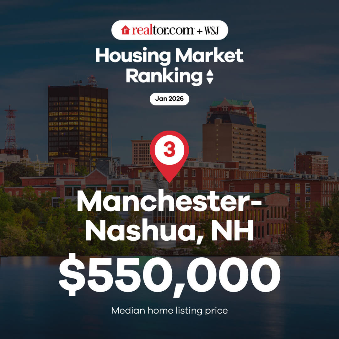 Manchester-Nashua, NH is ranked no. 3 on The Wall St. Journal - Realtor.com 2026 Winter Housing Market Ranking.