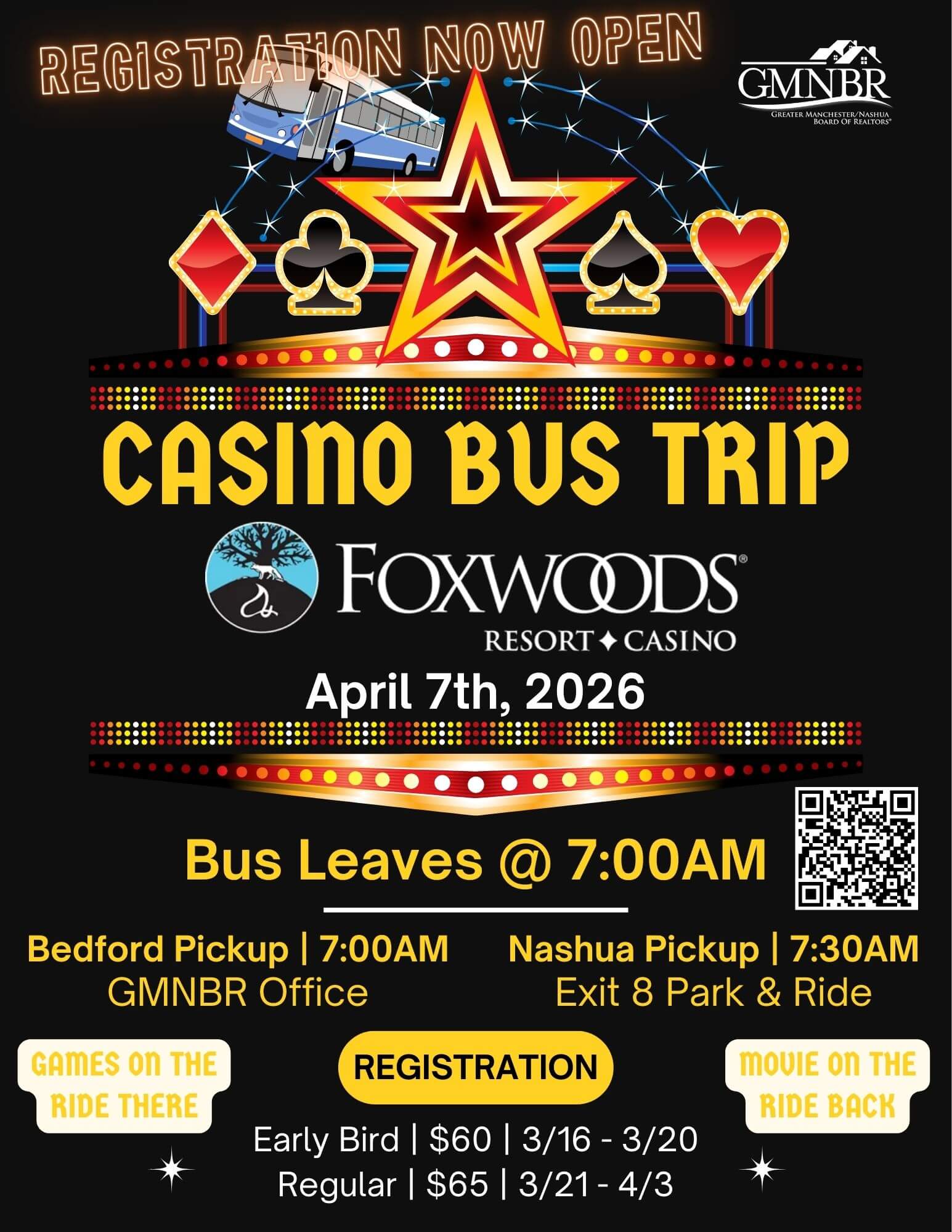 Weāre heading to Foxwoods Resort Casino on April 7th for a day of fun, networking, and a little friendly luck at the tables! Hop on the bus with fellow GMNBR members and enjoy a day filled with gaming, great company, and a chance to unwind outside the office.