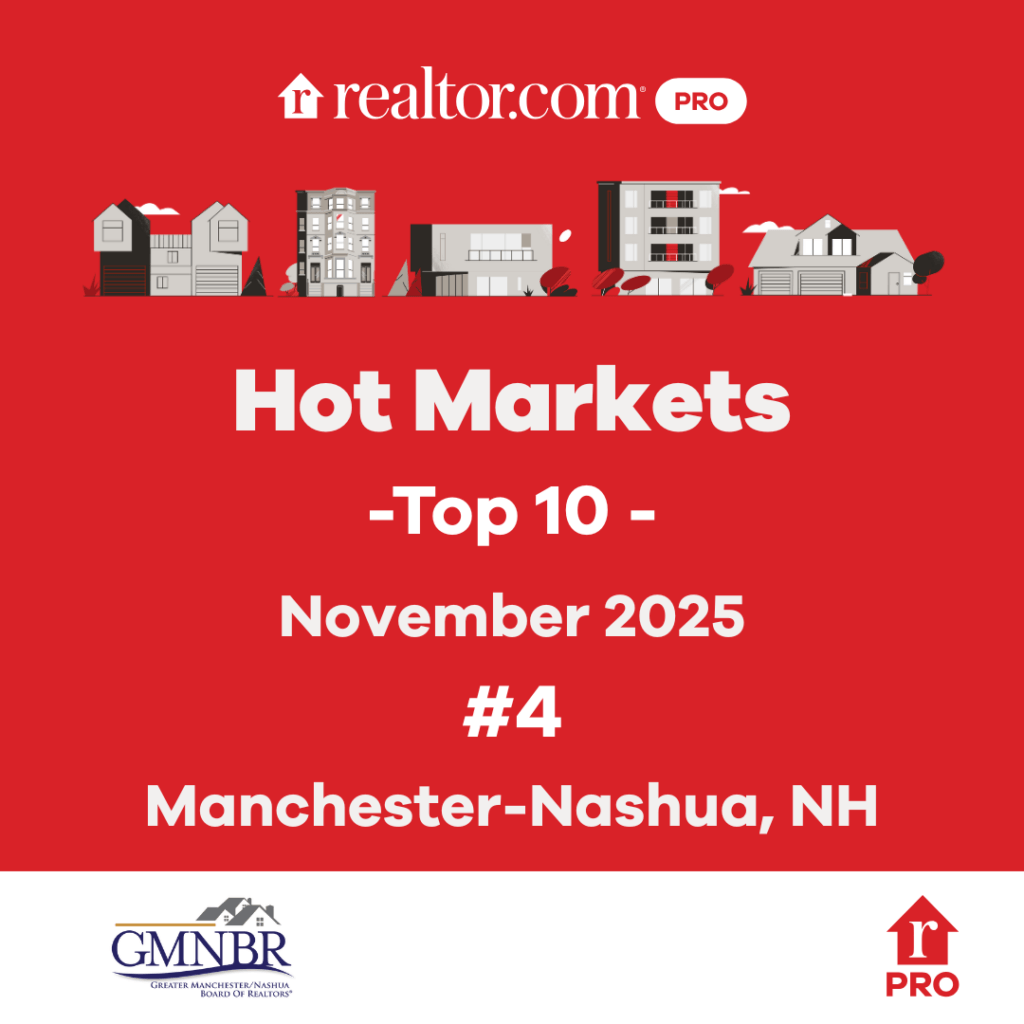No. 4 Hot Market Realtor.com The Manchester-Nashua market is number 4 on the Realtor.com Hot Markets list for November 2025. The ranking is based on market demand (views per property) and pace of the market (days a property remains active) on Realtor.com Realtor.com Pro https://www.realtor.com/research/november-2025-hottest-housing-markets/ Back to All Posts