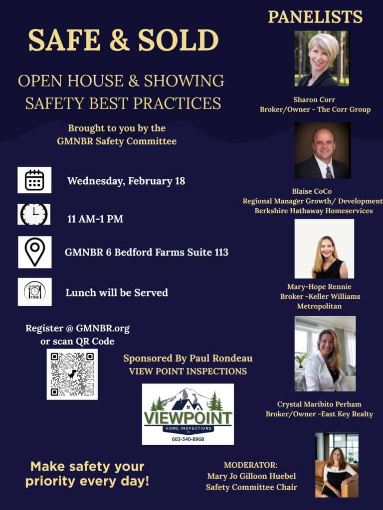 Safe & Sold – Panel Discussion Safe & Sold – Panel Discussion Because your safety matters just as much as the sale. Where: GMNBR Classroom When: Wednesday, Feb 18 Time: 11:00 AM – 1:00 PM Register Here https://members.gmnbr.org/ap/Events/Register/zBFV2AmFgCACR Back to All Posts