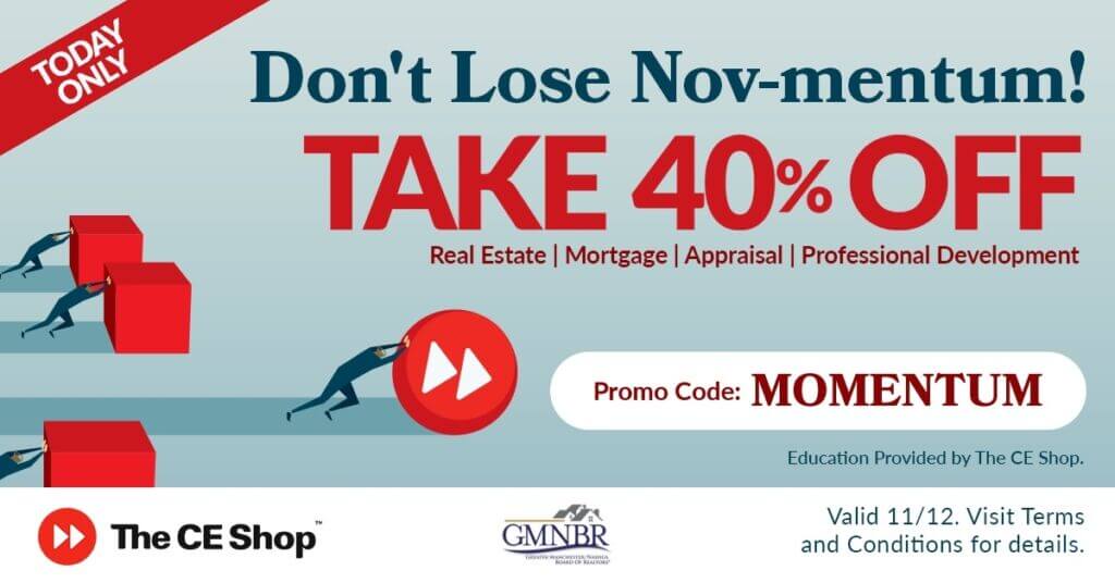 CE Shop Discount Promo Code: MOMENTUM The end of the year is coming, but don’t lose that hustle! Your hard work deserves a boost — take 40% off courses TODAY ONLY when you visit The CE Shop and use code MOMENTUM at checkout. Save on Licensing and Continuing Education for Real Estate, Mortgage, Appraisal, and Professional Development courses. Valid today only, 11/12/25.…
