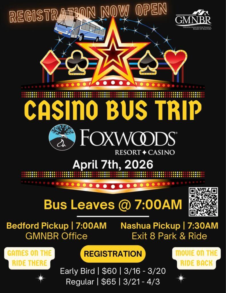 Casino Bus Trip 🎰 Feeling Lucky? Join Us for the GMNBR Casino Bus Trip! 🚌 We’re heading to Foxwoods Resort Casino on April 7th for a day of fun, networking, and a little friendly luck at the tables! Hop on the bus with fellow GMNBR members and enjoy a day filled with gaming, great company,…