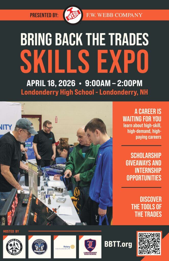 Bring Back The Trades Skills Expo GMNBR is coming to Bring Back The Trades this Saturday, April 18th! Visit us at the Londonderry High School for this Skills Expo. Click the link or scan the QR code to learn more! https://bringbackthetrades.org/ Back to All Posts